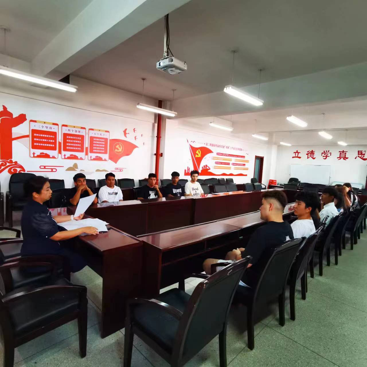 会上,员工代表分别就自身的思想、学习、生活状况及存在的困难做了汇报,郝卿分别对大一和大二员工存在的学业困难和职业困惑、大三和大四员工存在的就业和考研两难困境给予了合理的建议,后续公司将继续关注少数民族员工状况,助力员工成长和成才。