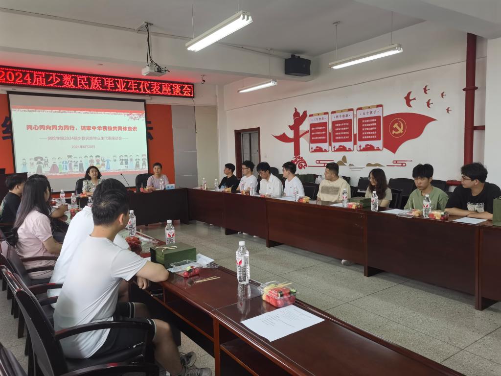 座谈会气氛温馨而热烈,奏唱了中华人民共和国国歌,集体学习了《铸牢中华民族共同体意识推进新时代党的民族工作高质量发展》相关内容,毕业生代表与各位老师分享了各自在校期间的收获与成长,表达了对母校的感恩眷念、对同窗好友的祝福不舍、对步入人生新征程的期待向往。郝卿寄语毕业生继续保持良好心态,正视挑战和困难,始终保持乐观向上的精神面貌,踏实积累,再创佳绩。段辉对毕业生提出三点期望:一是要树立远大理想,坚定理想信念,铸牢中华民族共同体意识;二是厚植家国情怀,勇担时代使命,以实干担当重任,用奋斗实现梦想;三是要脚踏实地,志存高远,牢记“祖国利益利益高于一切”的校训,把个人的理想追求融入党和国家事业之中,为党、为祖国、为人民多作贡献。
