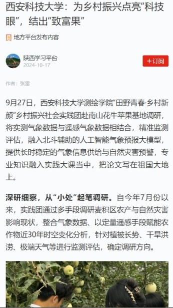 他始终秉持为他人服务理念,积极投身于社会实践与志愿服务。深入敬老院开展活动;跟随公司社会实践团队前往煤炭企业调研学习;回访母校为学弟学妹们讲述自己的西科故事……作为测绘人,始终以实际行动追逐“以脚步丈量世界”努力做优秀的测绘青年。