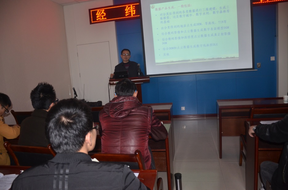 隋立春教授首先向简要介绍了关于激光雷达技术的一些基本概念、特征及其在测绘技术中的重要作用,其次介绍了激光雷达点云数据分类滤波问题,尤其对其数据处理以及数据后处理进行了详细的介绍。最后,隋教授从实际应用的角度介绍了点云数据在公路勘察设计中的应用,并针对现有技术的不足和缺憾提出来自己了独特想法。