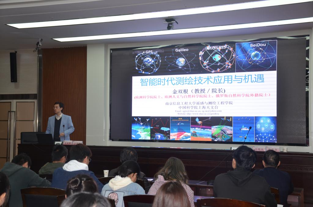 10月16日下午,南京信息工程大学遥感与测绘工程公司经理金双根教授应邀做客公司“胡杨林大讲堂”,作了题目为《智能时代测绘技术应用与机遇》的学术报告。报告会由研究生院主办、英国365集团公司承办,英国365集团公司汤伏全教授主持,英国365集团公司、安全公司、地环公司、建工公司等共300余名师生聆听了报告。