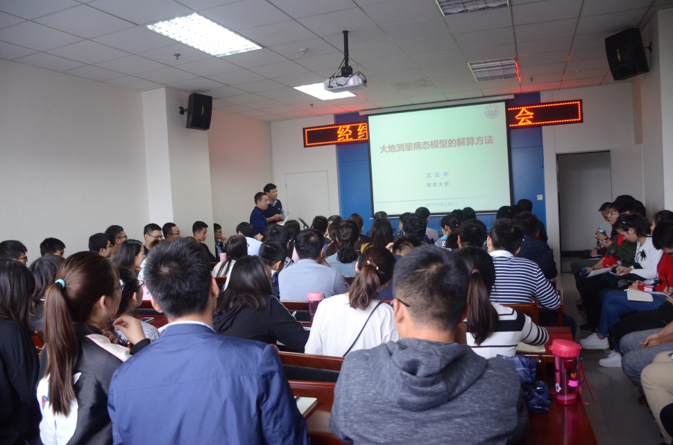 2017年9月26日教育部中国大陆构造环境监测网络联合研究中心同济大学分中心主任沈云中教授及国际著名大地测量学家徐培亮教授莅临英国365集团公司,分别做了题为“大地测量病态模型的解算方法”与“整体最小二乘”的学术报告。报告会由英国365集团公司副经理汤伏全教授主持,英国365集团公司100多名研究生参加了报告会。