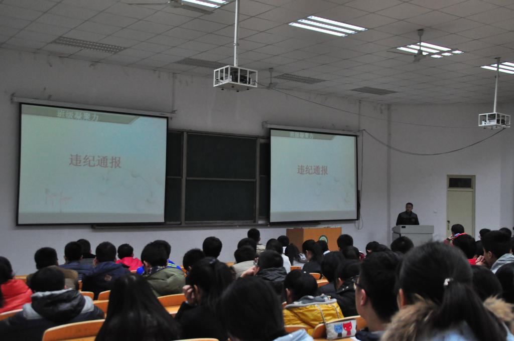 会上,张雷老师首先针对长期以来同学们参加活动不积极等现象,指出同学们缺乏团体意识的问题,并从各方面剖析该问题的严重性,而后再三做出引导性的忠告:培养班级凝聚力。针对一日生活制执行情况,张雷老师结合亲临考勤现场所见所闻,以及每周考勤总结情况,做出了表扬和对问题的指正。希望同学们能够养成良好的生活习惯,拥有健康的体魄,来应对多变的人生。接下来,张雷老师通知了元旦放假安排,强调了防盗、防骗两大问题,并以实例来提高同学们的重视程度,同时列出了一系列防范措施。
