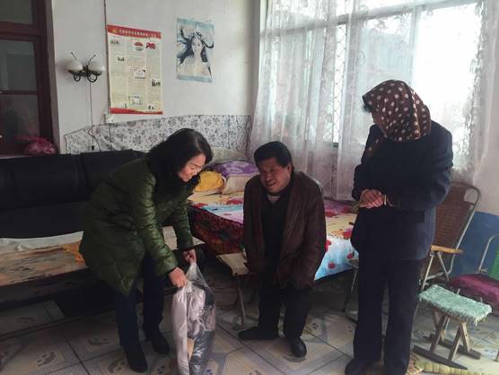 2018年2月9日,公司党委书记殷屈娟一行赴长武县芋元村看望公司结对帮扶的两户贫困户,为贫困户李军红家庭送去了棉衣等保暖衣物若干,为五保贫困户李文文家庭送去了慰问金。走访期间,殷屈娟与贫困户家庭亲切交谈,深入了解他们家庭面临的困难、家人的健康状况、主要经济收入等情况,多次鼓励他们积极克服苦难,争取早日脱贫。