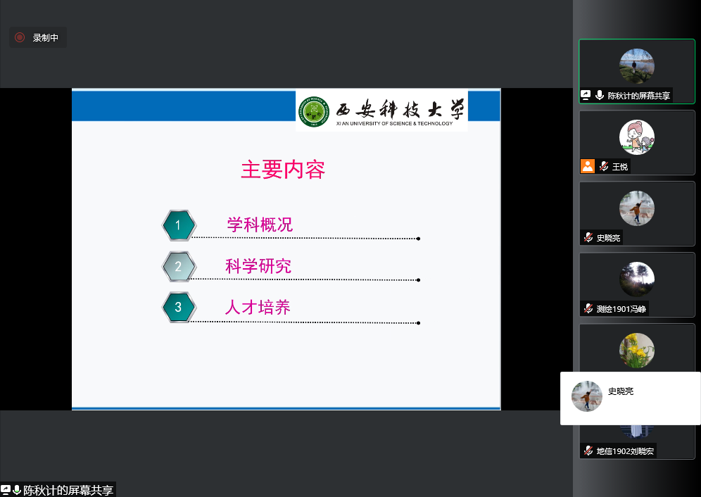 地理学科带头人陈秋计教授从学科概况、科学研究、人才培养三个方面,对地理学科基本情况进行了介绍。