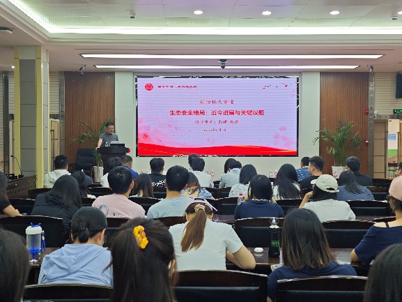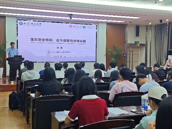 彭教授以“生态安全格局:近今进展与关键议题”为题,全面讲解了生态安全的学科背景、科学问题与现实需求,以及研究重点和难点。还通过对案例的学习和分析,揭示出生态安全格局九大议题的逻辑关系。