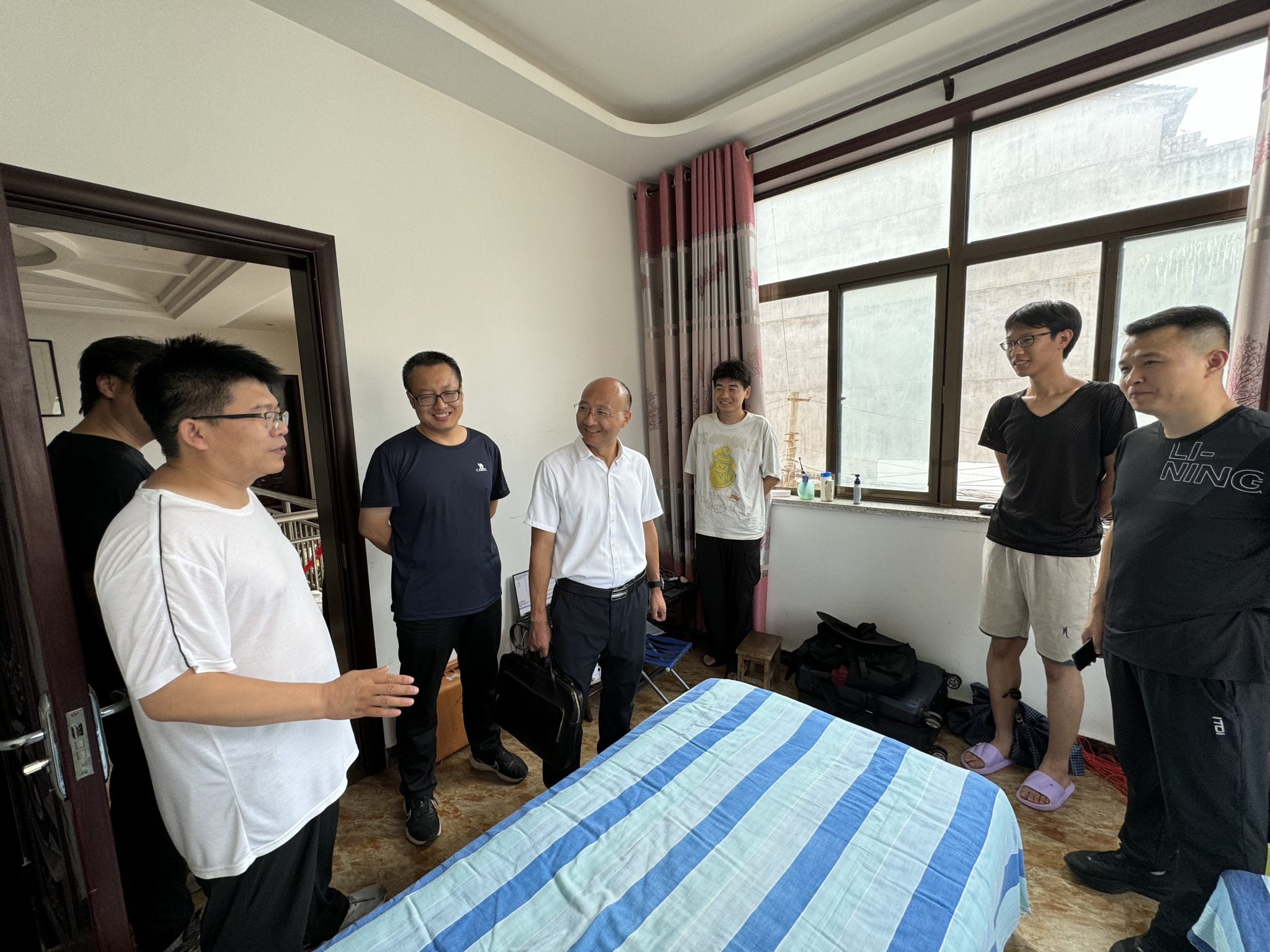 在焦岱镇鲍旗寨实习基地,戴开文一行看望了开展各类实习任务的师生们,调研了少数民族员工在基地住宿、饮食等生活情况,提醒同学们遵守实习基地要求,珍惜实习机会。同时,他肯定了带队老师对实习工作的辛苦付出,要求老师做好员工安全防护工作,确保野外实习顺利完成。此外公司师生在鲍旗寨村开展了微党课。