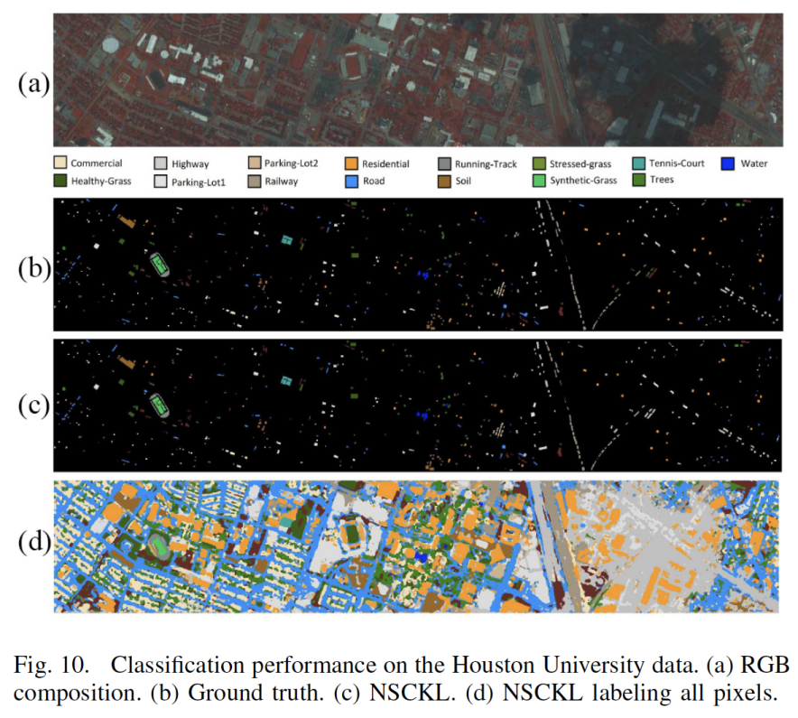 空谱分类(SSC)是目前高光谱图像分类方法研究发展的主流方向。但大多数SSC方法主要考虑局部相邻信息来辅助分类,因此,当有些相关性出现在非相邻的区域时,可能无法被有效发现和利用。尽管当前很多SSC方法可以获得“空间上下文”特征,但这些方法通常缺乏对非欧氏空间相关性的考虑。为了解决上述问题,我们开发了一种新的半监督分类方法,称为“NSCKL”。NSCKL可以聚合局部到全局的相关性来实现特征表示,进而提高地物分类的表现。在这项工作中,首先设计了一种正则化的谱聚类方案,称为“NSC。NSC可以通过迭代学习为无向图建立建立顶点,目的是将初始连接分配给与像素相关的节点。利用NSC先在欧几里得空间中收集局部相关性,然后结合基于核的机器学习在流形中捕获全局相关性,即使均匀像素分布在非连续区域,NSCKL仍然可以生成一种聚合特征来捕获全局相关性,聚合特征能帮助分类器大幅度提升地物分类的准确性。